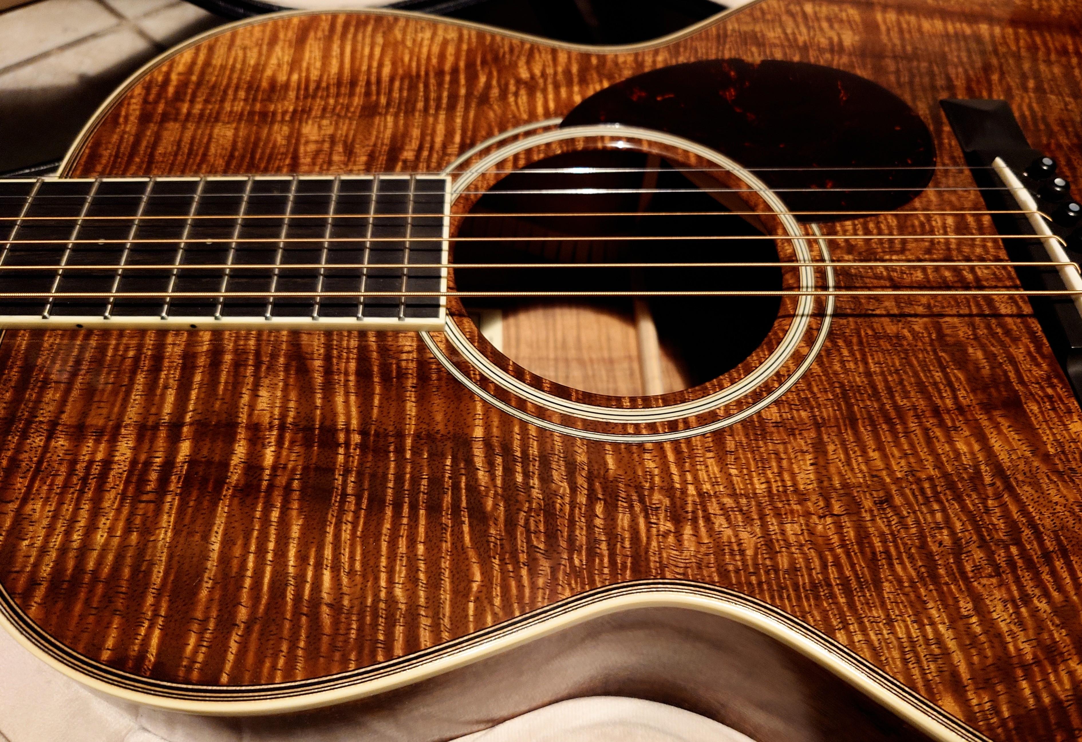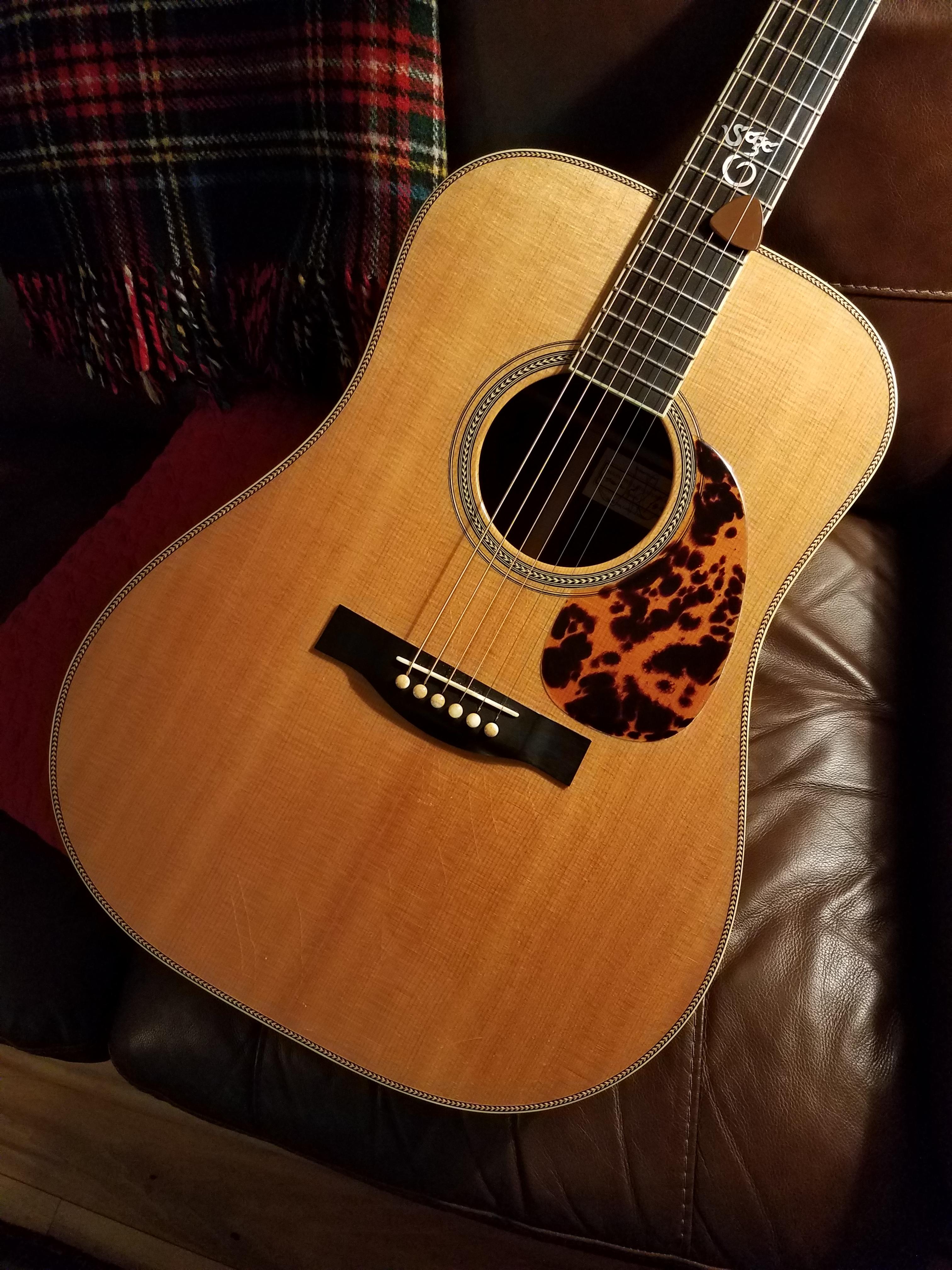 This isn’t my guitar (well, technically it is as it’s part of my store’s inventory!), but it is for sale. Might be the best guitar I’ve had in the shop to date, from any maker. And perhaps the best looking too! Amazing clarity and richness. Just a great example of what SCGC is capable of! “San Lorenzo” sinker redwood top, African Blackwood body, koa bindings.