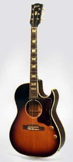 pyramid ebony bridge, ebony board, paddle head, 1 3/4 nut, 2 5/16 saddle spacing, SCGC Inlay at the 12th fret, Tony Rice style headstock overlay, enlarged sound hole, deep body